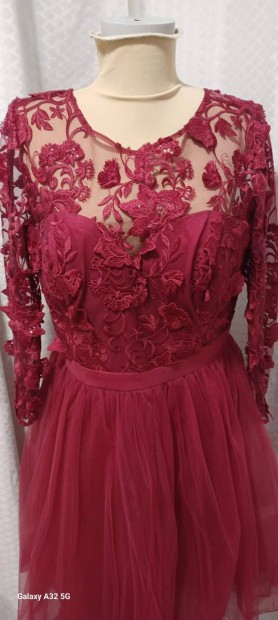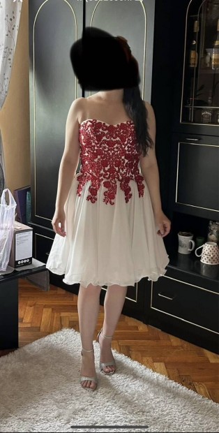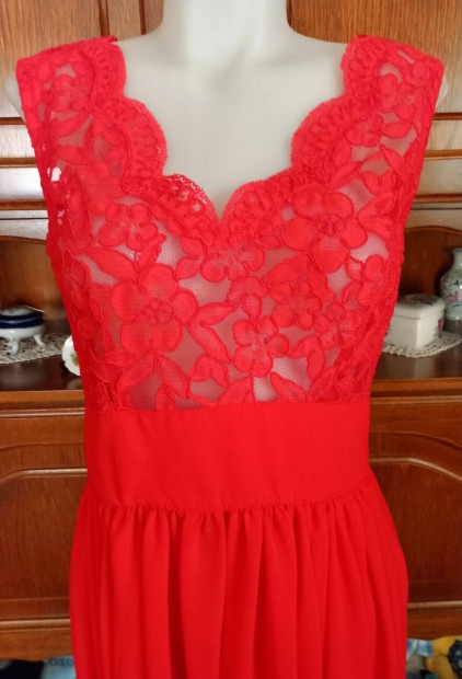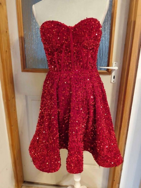 Új, tűzpiros menyecske ruha, 38-as méret, csillogós!
