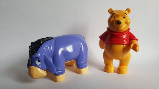 Micimackó és Malacka plüss figurák, fémszékekkel