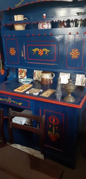 Régi népi festett előszoba szekrény előszoba fal paraszti bútor