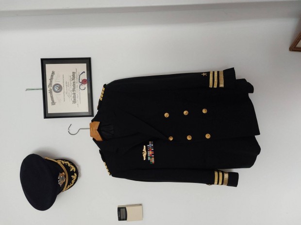 USA dandártábornoki egyenruha névre szóló dokumentummal és zászló