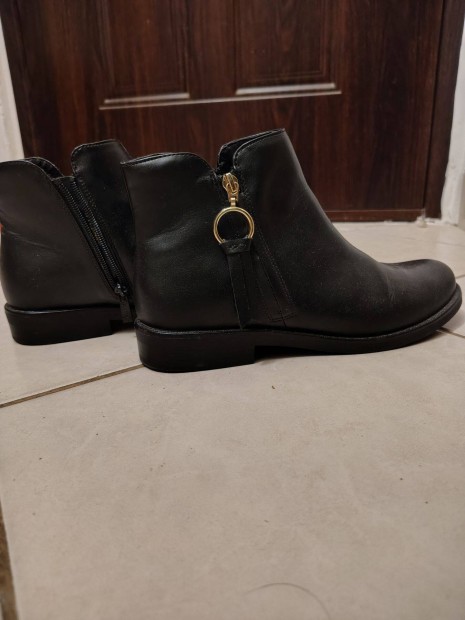 Fekete, csatos női bokacsizma csökkentett áron eladó - 40