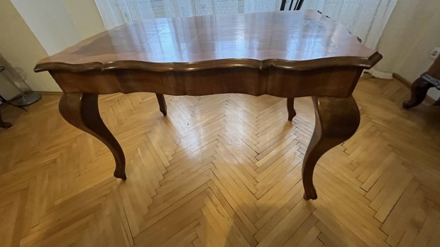 Antik neobarokk étkészlet tartó régi tükrös fiókos asztal