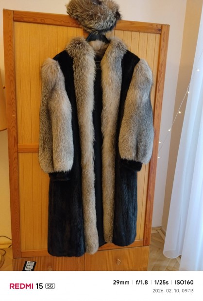 Műszőrme nerc bunda, gyönyörű darab, 44-48-as méret