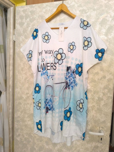Olasz fehér alapon kék virágmintás miniruha, tunika 46-48-as