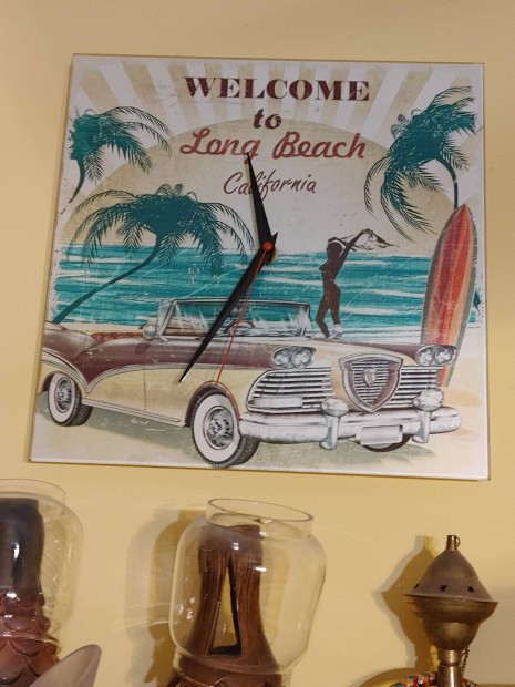 Long Beach California üveg számlapos old timer falióra quarc