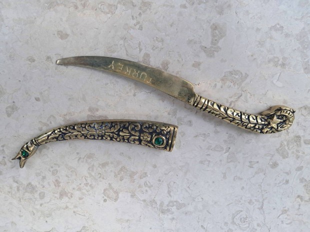 Bronz tintatartó tálca, vagy tolltartó és papírvágó kés