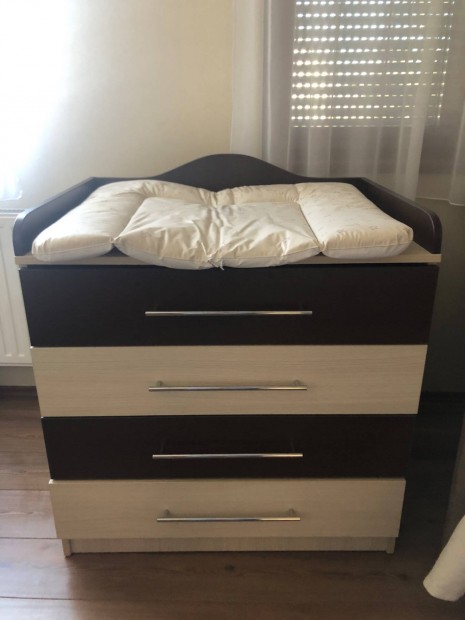 Magas fényű fehér fiókos pelenkázó szekrény
