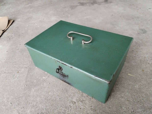 Pénzkazetta régi fém 36 cm hosszú 22 cm széles 13 cm magas