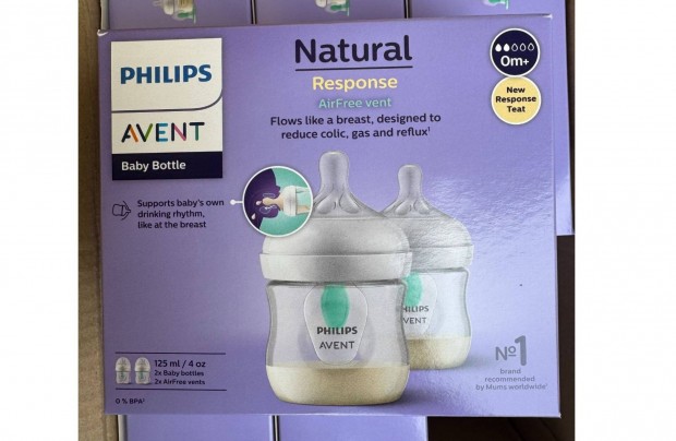 Új 2 x 125 ml Philips Avent Natural Response Baba Cumisüveg Airfree
