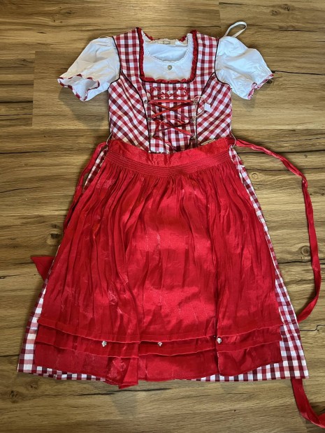 134/140-es piros kockás Kislány Dirndl ruha blúzzal