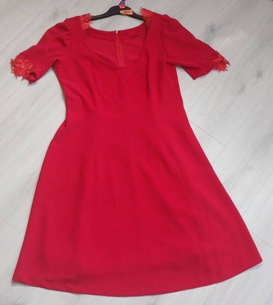 Új, címkés, földigérő, piros menyecske ruha, 42-es méret