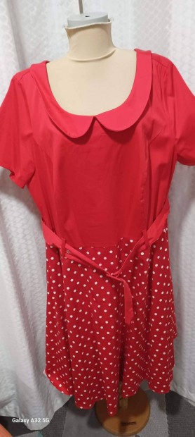 Új, molett, piros pöttyös menyecske ruha, 56-os méret