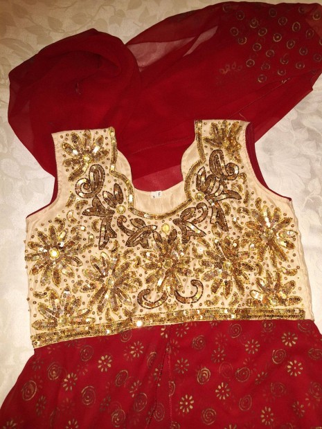 Piros- arany indiai 3 részes ruha S-es
