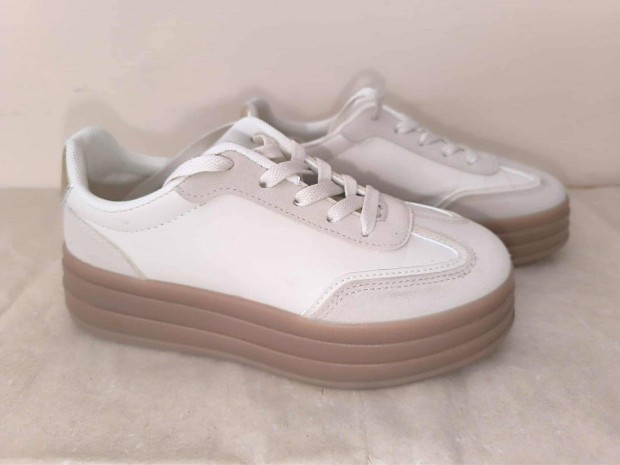 36-os fehér platformos cipő, bth: 22-22,5 cm