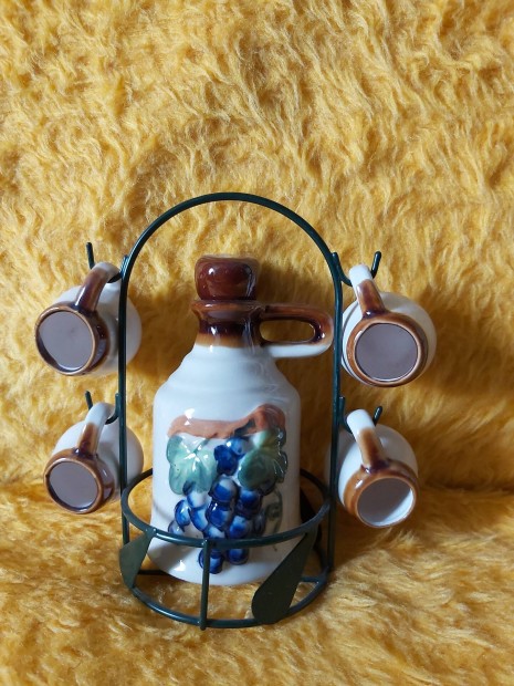 Hollóházi repesztett mázas kancsó, kiöntő, porcelán kancsó, retro