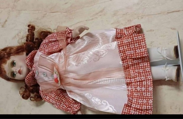 Sorszámozott nagyméretű indián porcelánbaba 70cm