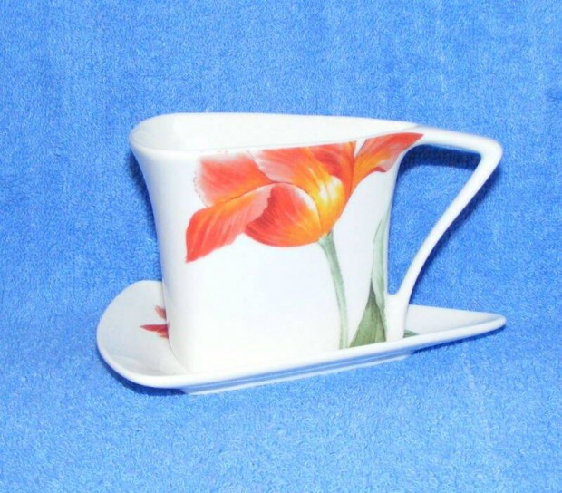 Kínai porcelán Virágos kávés csésze 2 db. + 1 alj
