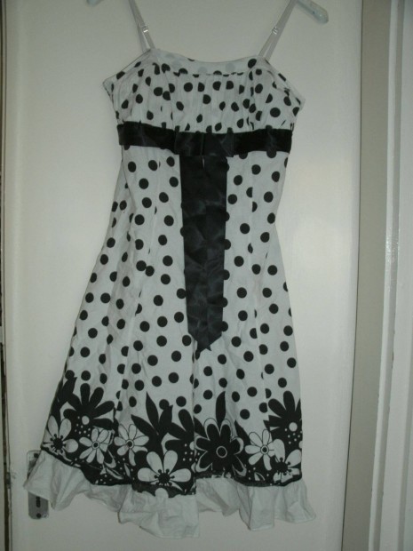 H&M fekete fehér pöttyös hosszú ruha 36