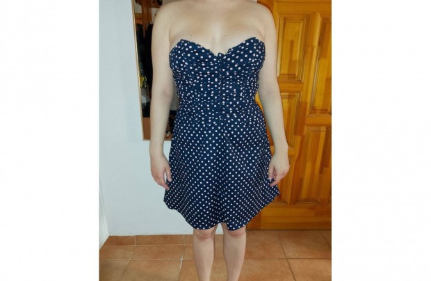 Új, molett, alkalmi női ruha, 50-es méret, kék pöttyös