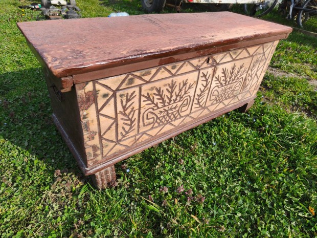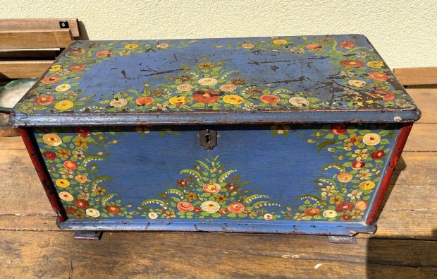 Festett láda kelengyés kelengyeláda - régi népi paraszti felújított