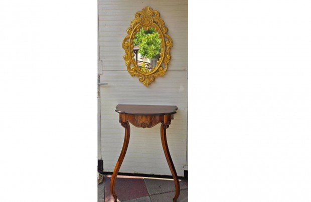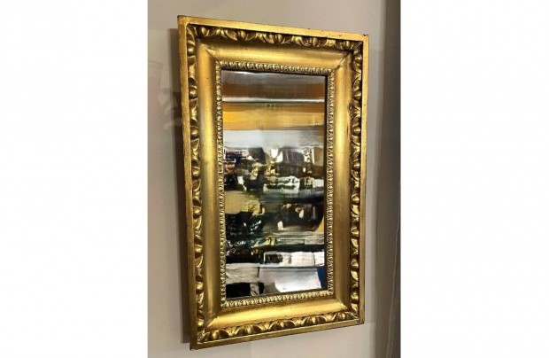 Antik Biedermeier Ökörszem mintás ökörszemes aranyozott régi tükör