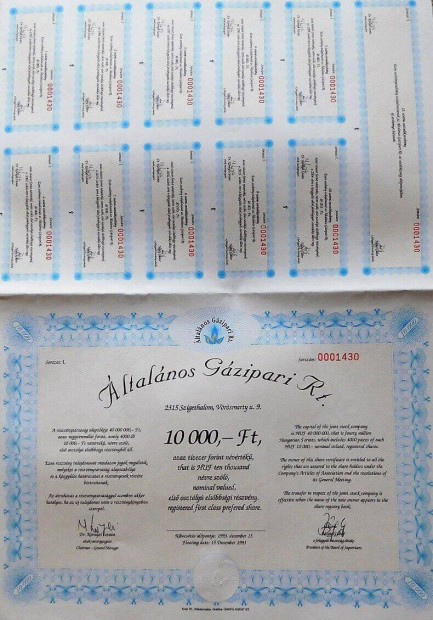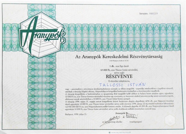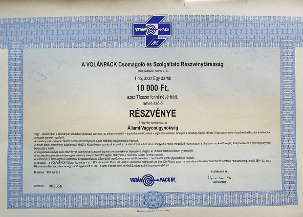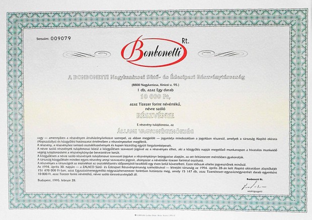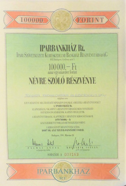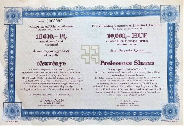 Középületépítő Részvénytársaság részvény 10000 Ft névérték 1991