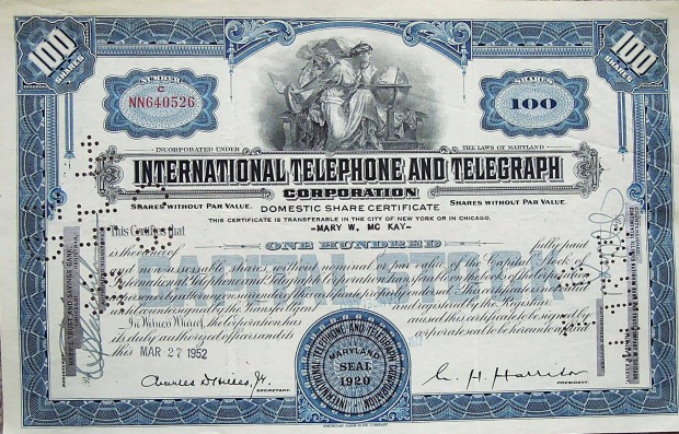 USA retro részvény 1952 ITT International Telephone Telegraph