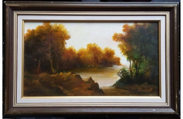 Reinhardt István: Őszi folyópart, 17x30 cm