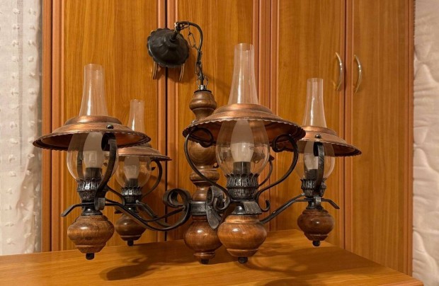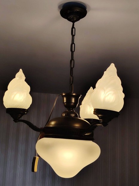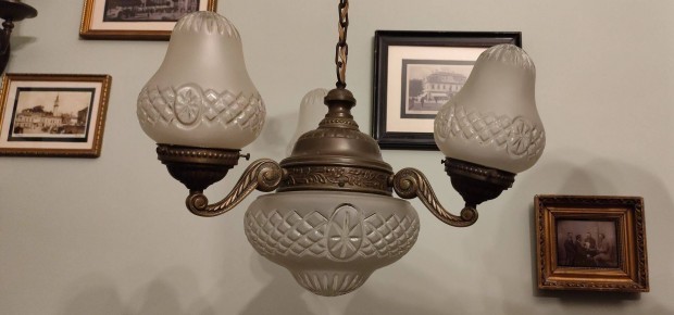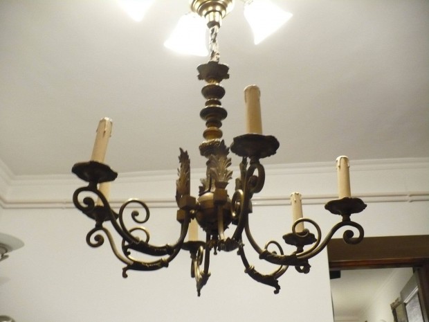 Empire figurális puttós antik 3 karú 4 izzós réz csillár