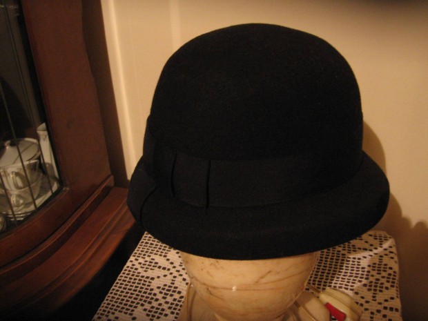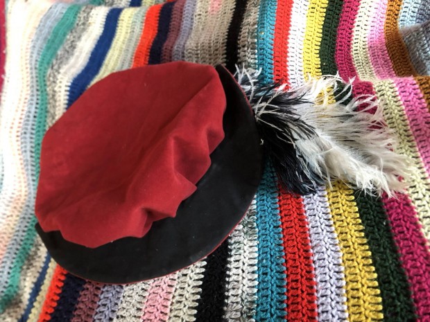 Régi hegedülő manó a zöld kalapban üveg pohárban 8 cm