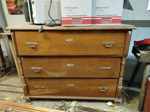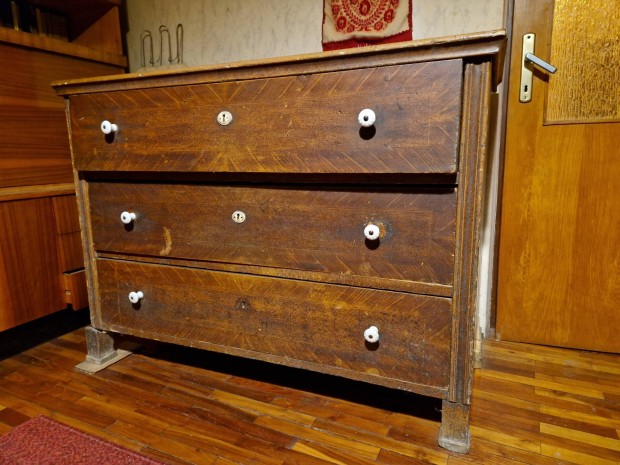 Régi komód, népi bútor, fiókos szekrény, fellelt antik bútor
