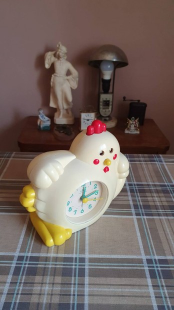 Régi retró fém rugós talpon álló asztali óra