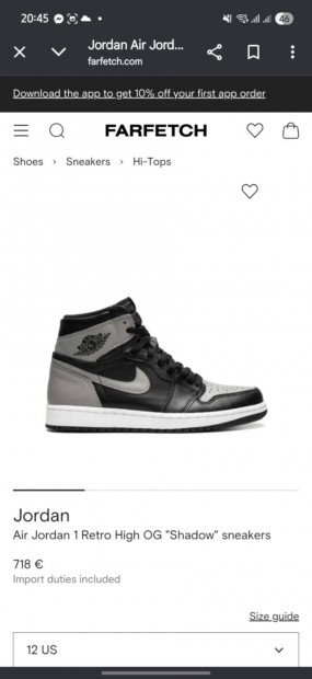 Új 44 Nike Air Jordan 1 Retro High OG Rebellionaire Férfi Cipő 28 cm