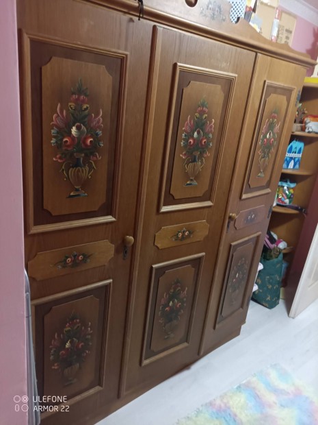 Retró vitrines szekrény + ruhásszekrény - vintage bútor garnitúra
