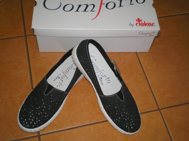 Új Rieker Comforto cipő 37-es 37 fekete színben dobozában