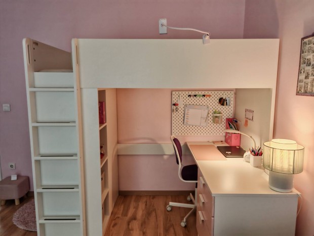 IKEA Smastad galériaágy, íroasztal, szekrény