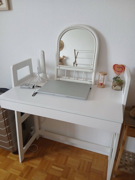 2 db koloniál stílusú fiókos éjjeliszekrény és 1 db sminkasztal
