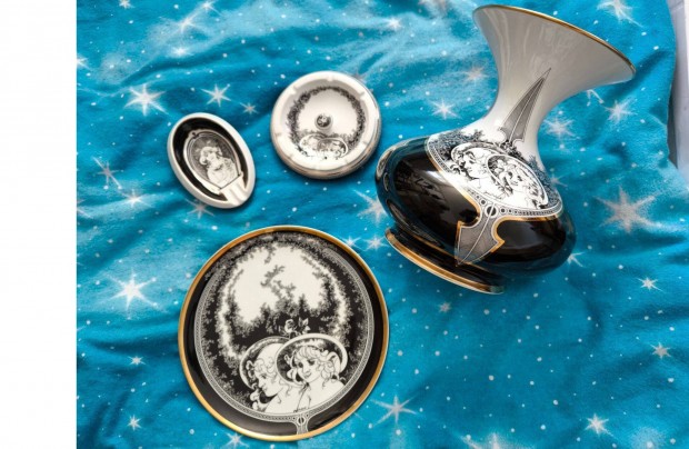 Szász Endre Hollóházi porcelán bonbonier, doboz