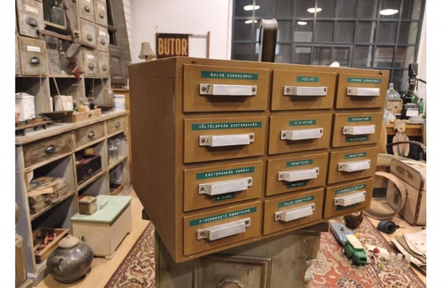 Fiókos alkatrész és szerszám tároló szekrény, sokfiókos tiszta fa