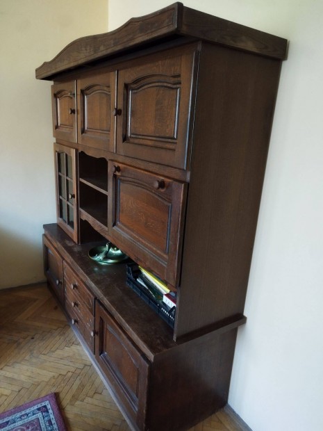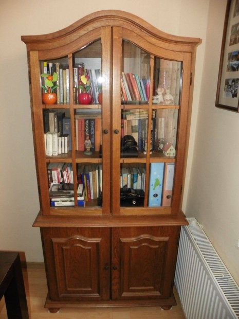 Megkímélt állapotú tömör fa tálaló/könyves szekrény