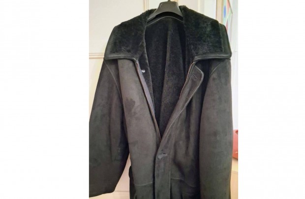 Irha-bőr télikabát, fekete, jó minőségű XL