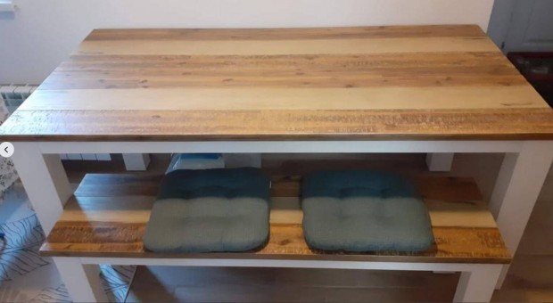 Tömörfa étkező asztal 6 székkel