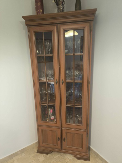 Masszív, régi tömörfa vitrines szekrény / tálaló szép állapotban