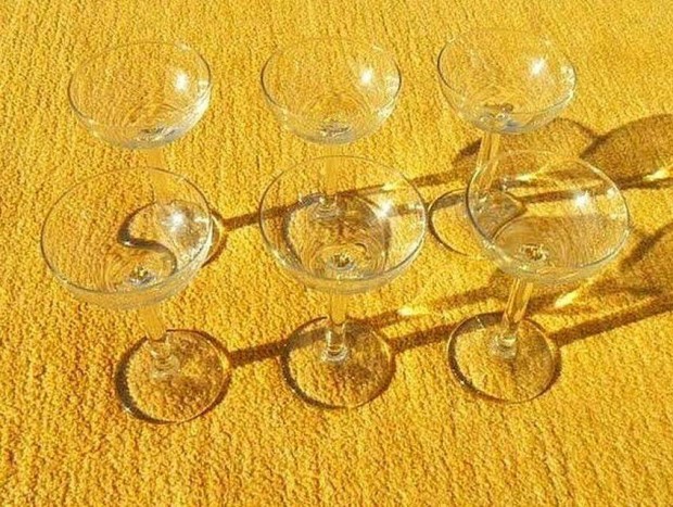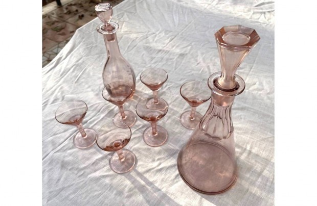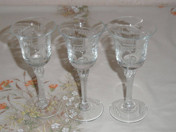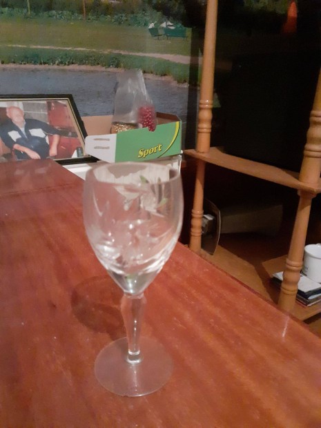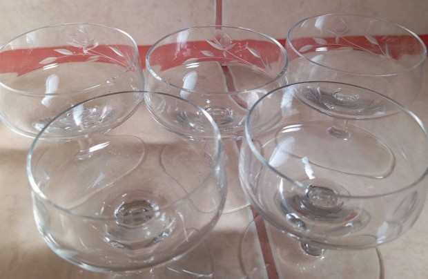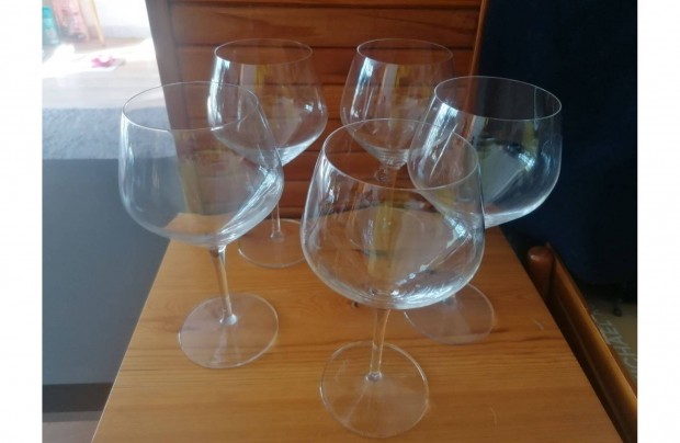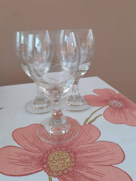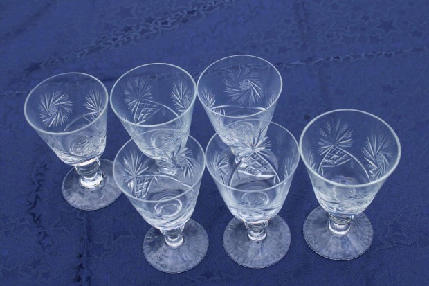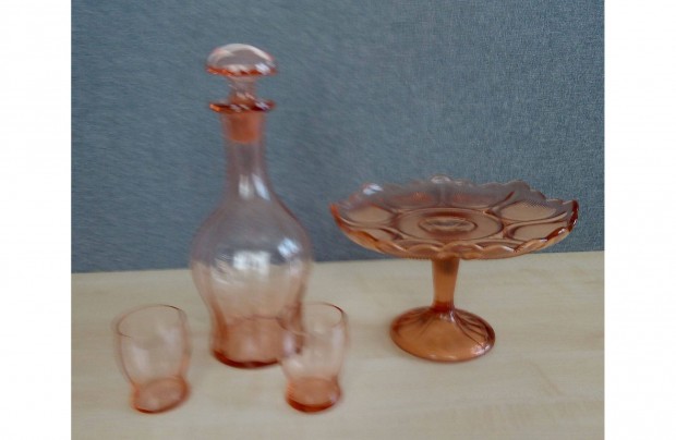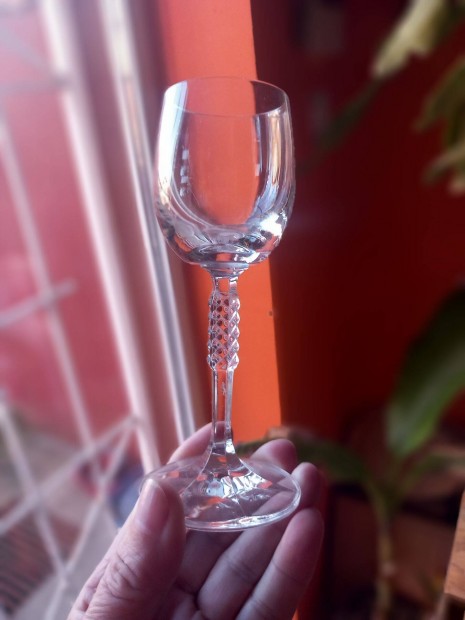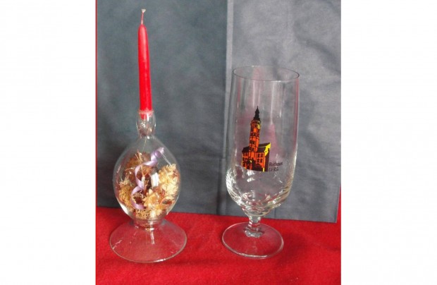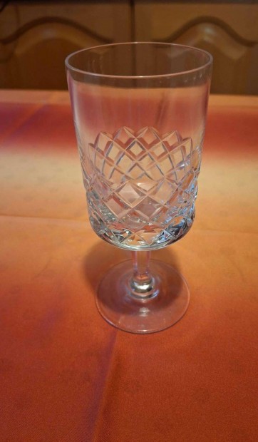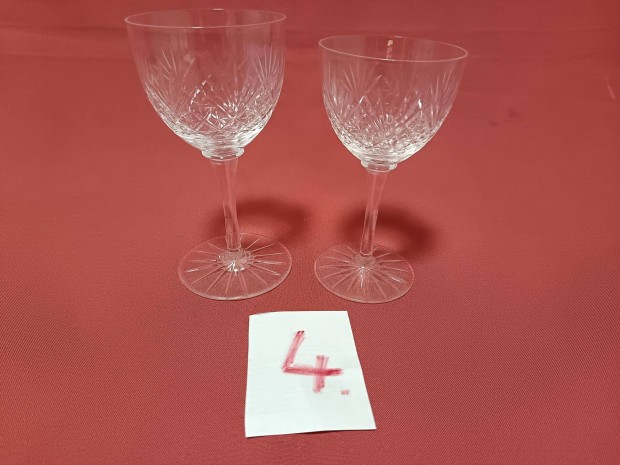 Bordó metszett kristály tál és talpas boros pohár vitrin állapot