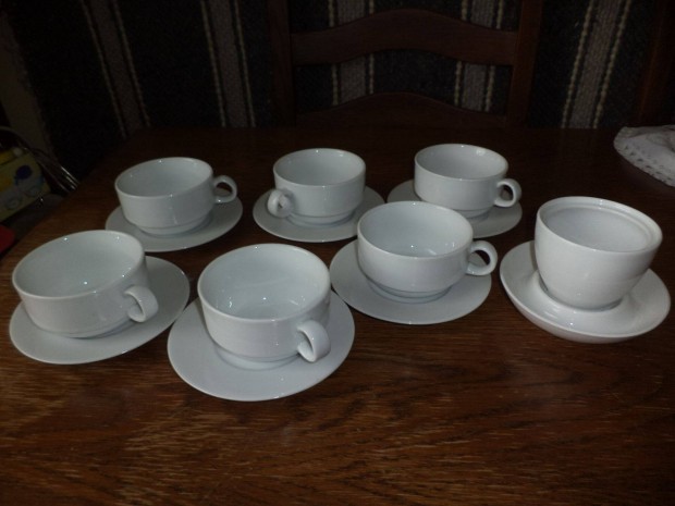 Retro narancs színű fehér pöttyös porcelán teáskészlet 13 db