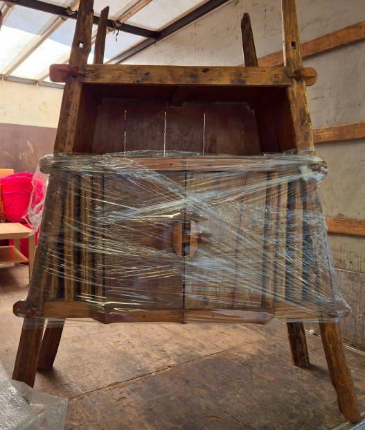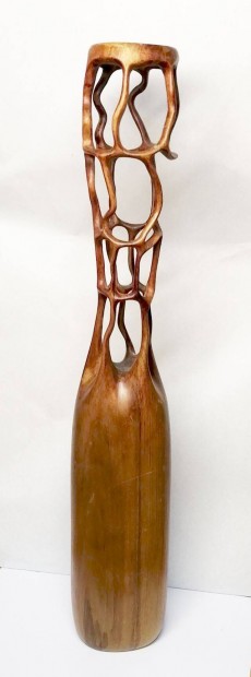 Japán Feng Shui áttört teakfa váza, különleges kézműves munka