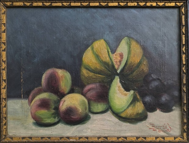 Régi gyümölcs-virág nagyméretű csendélet antik olaj vászon festmény