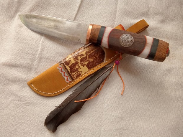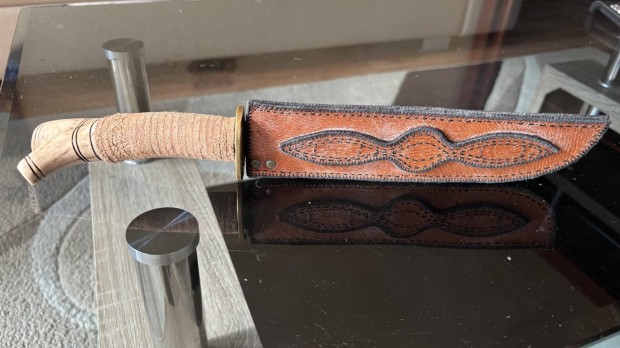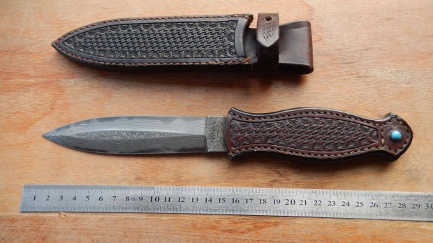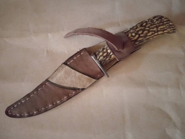 Damaszkolt vadászkés valódi agancs markolattal