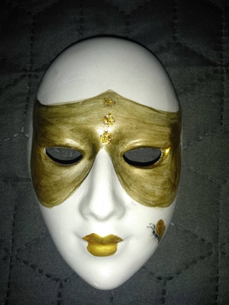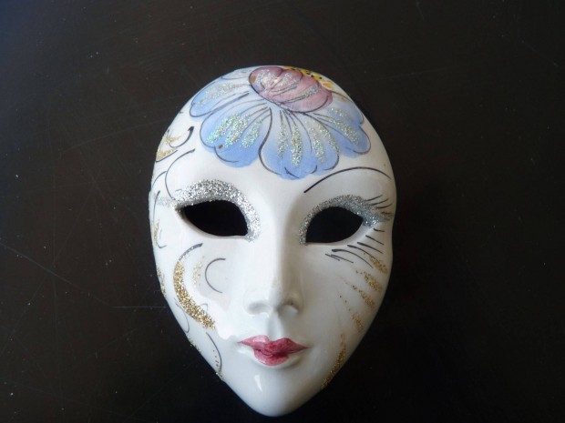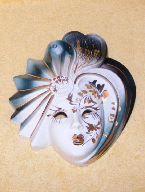 Velencei maszk türkiz -arany bross, kitűző