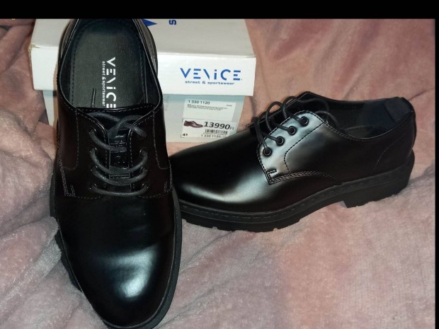 Új 41-es Venice férfi fekete alkalmi ünnepi elegáns cipő 10900ft